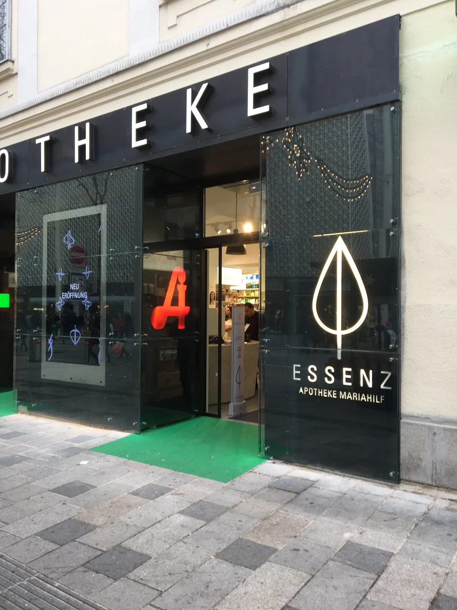 Für die Essenz Apotheken wurde ein flexibles Digital-Signage-System über mehrere Standorte realisiert. Ein grossformatiges Outdoor-Display sorgt für maximale Sichtbarkeit im öffentlichen Raum, Indoor-Displays informieren Kunden über Angebote und saisonale Empfehlungen.