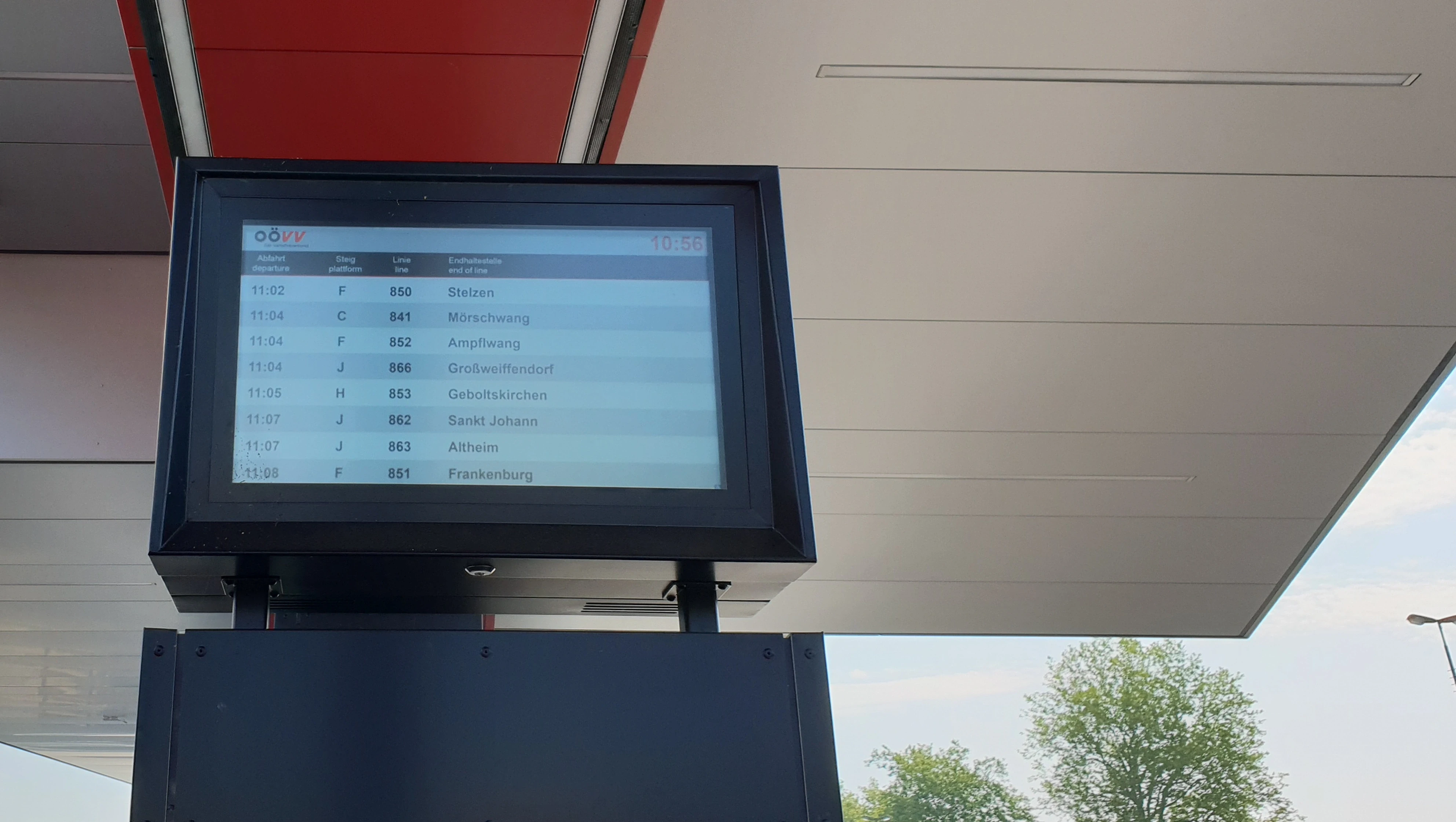 Für den Oberösterreichischen Verkehrsverbund wurde NewsRodeo zu einem umfassenden Infopaket erweitert. Neben der interaktiven Routen- und Verbindungsabfrage zeigt das System Karten, Umsteigemöglichkeiten und individuelle Reisewege direkt am Display.